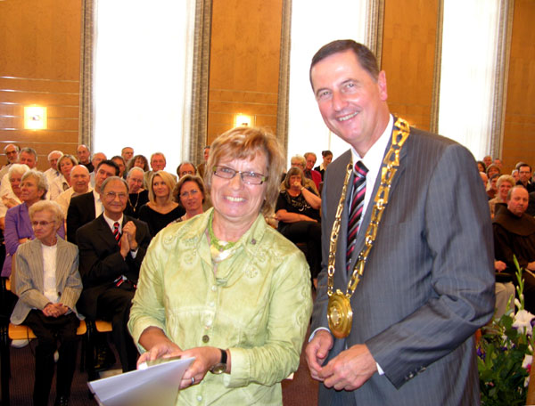 Hanne vom Scheidt wurde mit dem "Wuppertaler" aus den Händen von Oberbürgermeister Peter Jung geehrt.