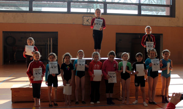 Im Wettkampf des Jahrgangs 2004 ließen die drei NTV-Turnerinnen der Konkurrenz keine Chance. So gelang Taisiia trotz ihrer Aufregung zum ersten Mal alleine der Aufschwung am Reck. Durch ihr turnerisches Talent konnte sie viele Punkte sammeln, die ihr insgesamt auf einen guten dritten Platz verhalfen. Auch Judith konnte durch ihre Körperspannung, vor allem am Boden und am Sprung, glänzen. Schließlich belegte sie mit knapp neun Zehnteln vor ihrer Vereinskameradin den zweiten Platz. Den besten Wettkampf zeigte Lisa. Mit schwierigen, aber sauber geturnten Übungen konnte sie die Kampfrichter überzeugen und gewann verdient die Goldmedaille.